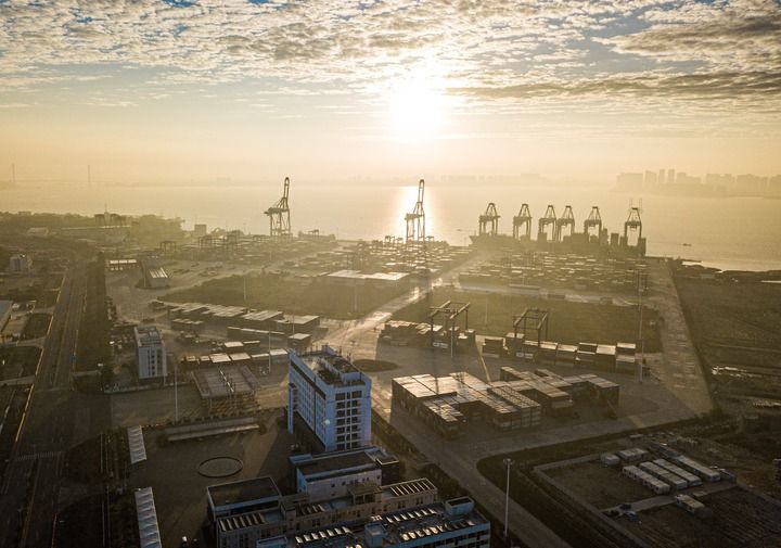 2024年1月1日,海南省洋浦经济开发区拍摄的海南自贸港集装箱航运枢纽——洋浦国际集装箱码头(无人机照片)。新华社记者蒲晓旭 摄