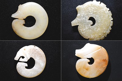 河南安阳殷墟博物馆新馆内展出的龙形玉玦。新华社记者 李 安摄