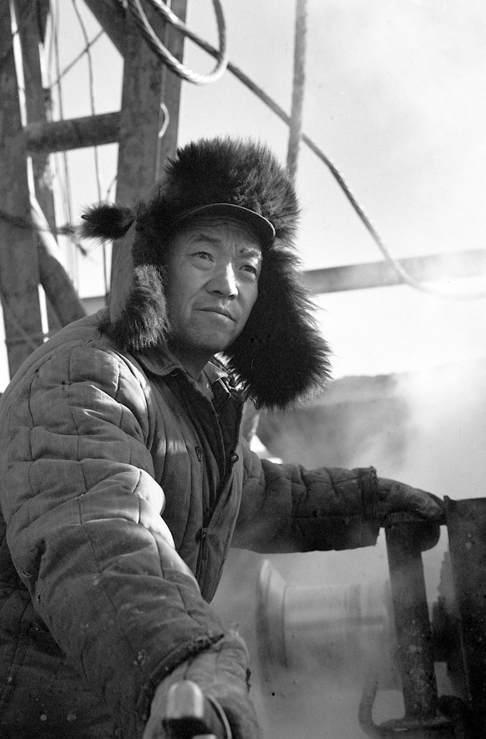 20世纪七十年代,大庆油田钻井工人在严冬里进行作业。