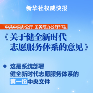 中共中央办公厅、国务院办公厅近日印发《关于健全新时代志愿服务体系的意见》,这是系统部署健全新时代志愿服务体系的第一份中央文件,对完善志愿服务制度和工作体系、促进志愿服务事业长远发展具有重要意义。