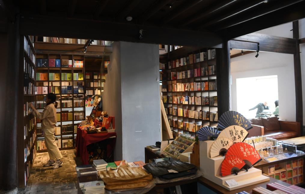 2024年1月30日,游客在陈家铺村一家书店休憩。浙江省松阳县四都乡陈家铺村是一个藏在深山的传统村落。近年来,村里以传统村落风貌保护开发和传统民居修缮利用为支点,引进精品书店、民宿等项目,成为生态、文化、产业等融合发展的村落。