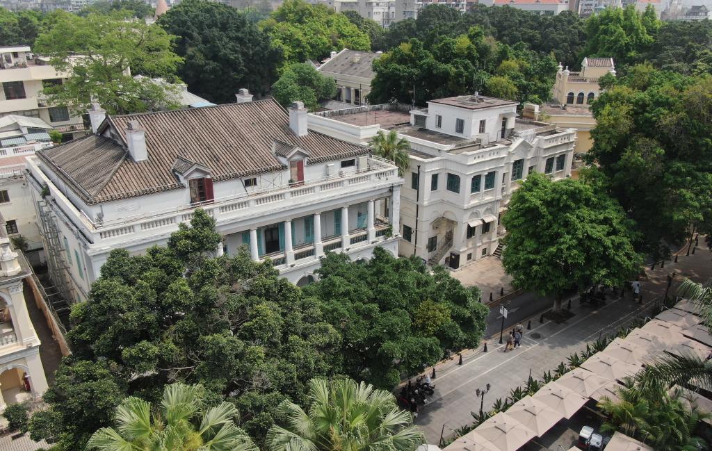 这是广州沙面的欧洲风格建筑(4月13日摄,无人机照片)。