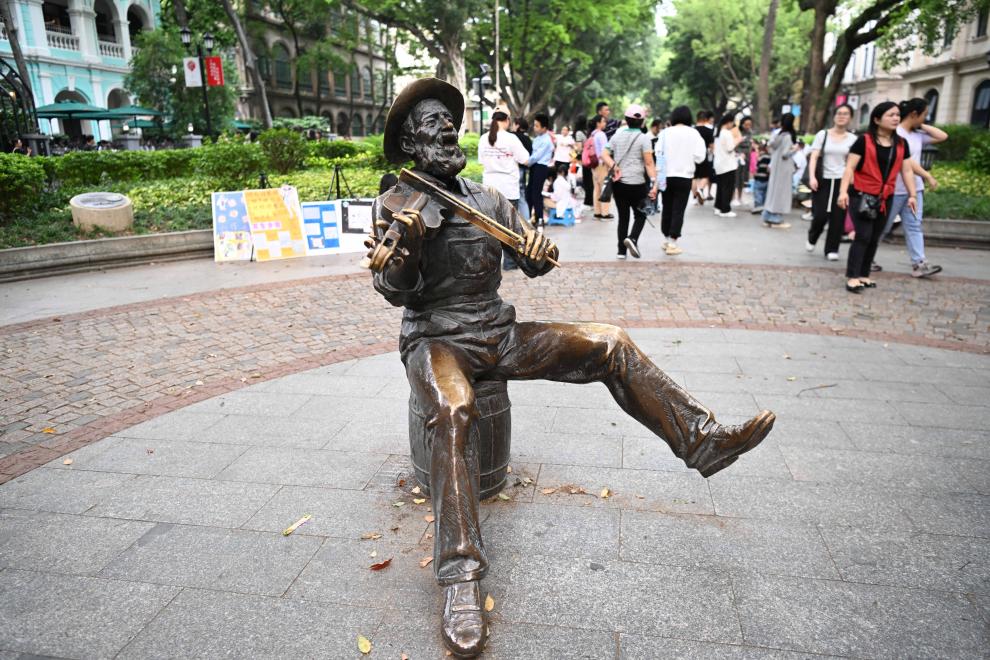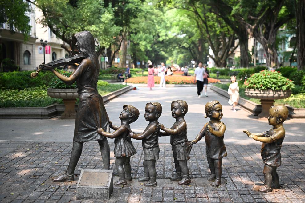 这是4月13日拍摄的广州沙面大街的雕塑。