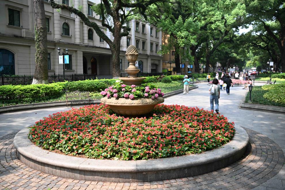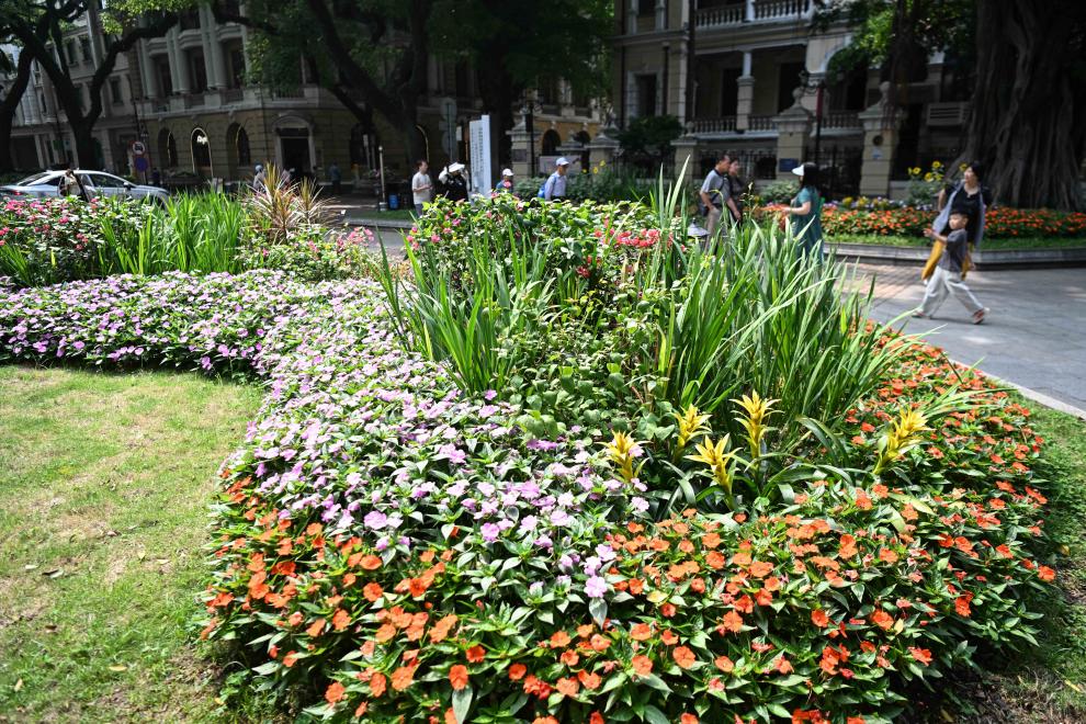 广州沙面大街上的花坛(4月11日摄)。