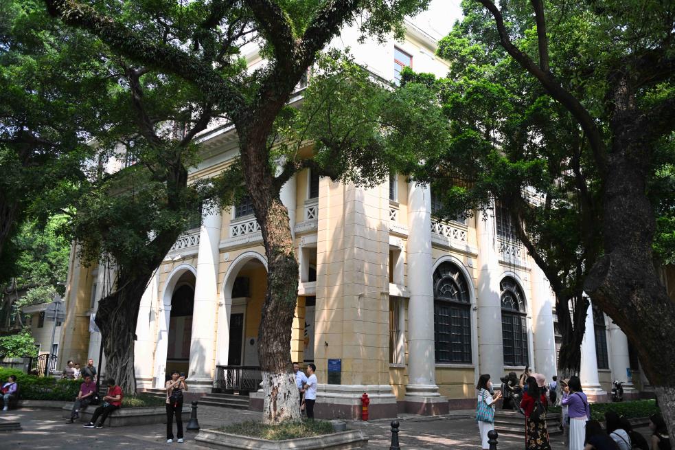 广州沙面大街上的万国宝通银行旧址(4月11日摄)。