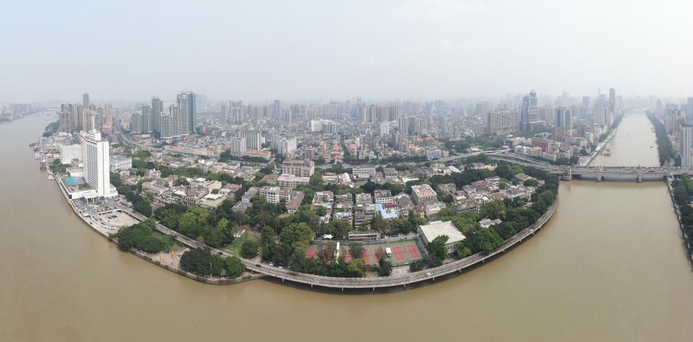 位于广州市荔湾区的沙面(4月13日摄,无人机照片)。