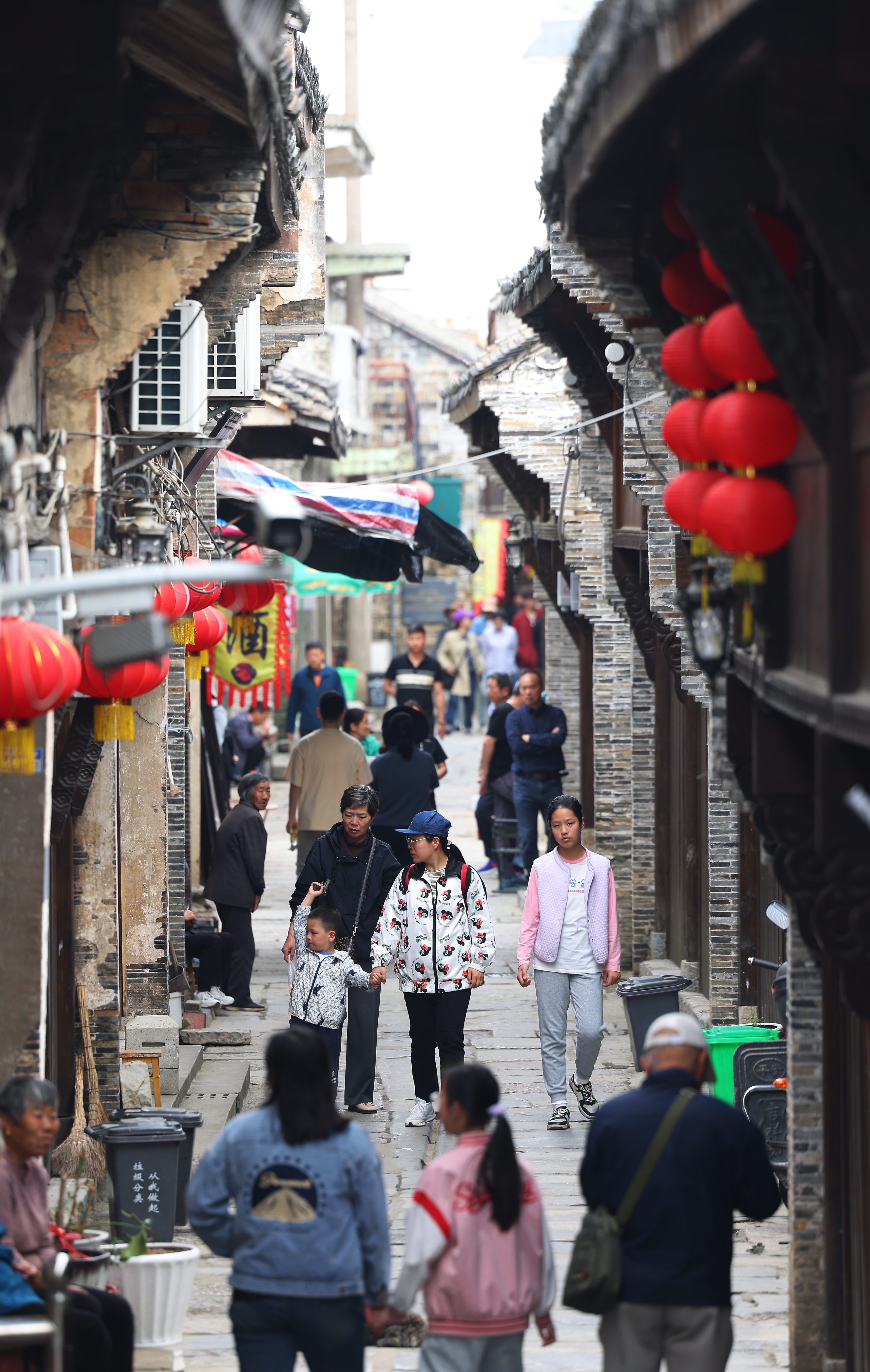 五一期间,南京市高淳区漆桥古村的游客量比往日多了不少。和一些过于商业化的古镇景区相比,这里少了几分熙攘喧闹,多了几分静谧从容。人们在漆桥古村中漫步,感受时光积淀的烟火气息,重拾暌违已久的乡味乡愁。
