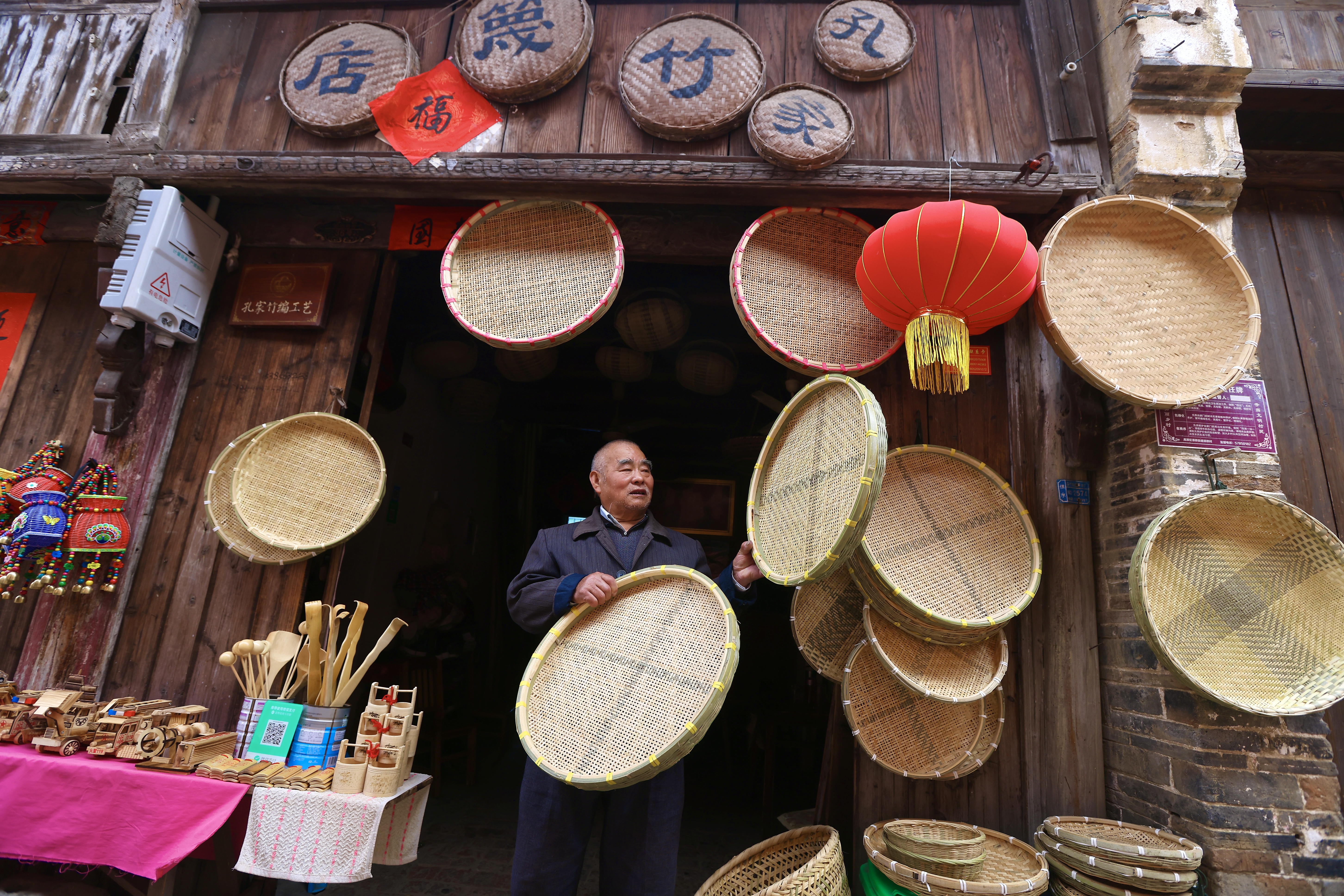 在漆桥古村,类似于夏记铁匠铺这样的老店铺、老行当、老手艺还有很多,它们并没有因为古村落的改造而消失。孔氏竹篾店里的竹篾箩筐,永昌商行里有着百年历史的雕花木柜台,坐在自家门前唠着家常、不时和游客打着招呼的村民们,以及遍布在街头巷尾的古井栏、石碑、石磨盘、石臼……展现着古村落原生态传承的鲜活面貌,勾勒出原住民烟火气十足的生活图景,也让很多来到这里的人们捡拾起早已漫漶的记忆,勾起心中沉潜的悠悠乡愁。