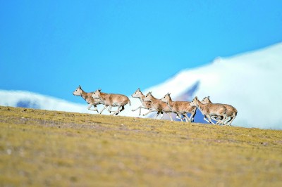 藏羚羊,是青藏高原的旗舰物种。藏羚羊处于食物链的中间位置,支撑了大型食肉类动物的生存。20世纪80年代,由于藏羚绒的巨额利润,盗猎猖獗,藏羚羊数量急剧下降,一度面临灭绝的危险。经过多年的生态保护和打击盗猎行动,藏羚羊数量已从20世纪末的不足7万只,增加至目前近30万只,保护级别也从濒危调整为近危。