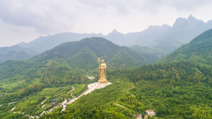 航拍九华山地标式建筑——地藏菩萨像。新华社记者 郭晨 摄