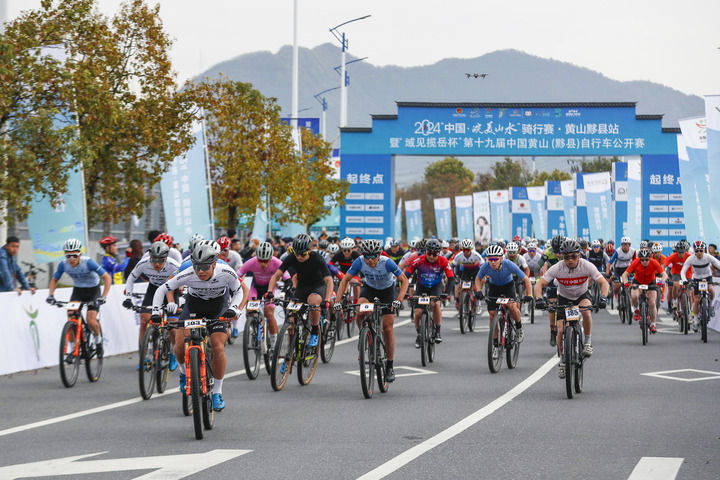 第十九届中国黄山(黟县)自行车公开赛举行。新华社发(施亚磊摄)