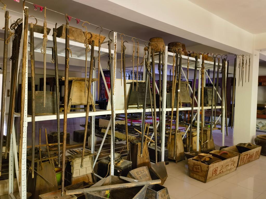 山东乡忆民俗文化博物馆馆藏的部分农耕器物。新华社记者王志 摄