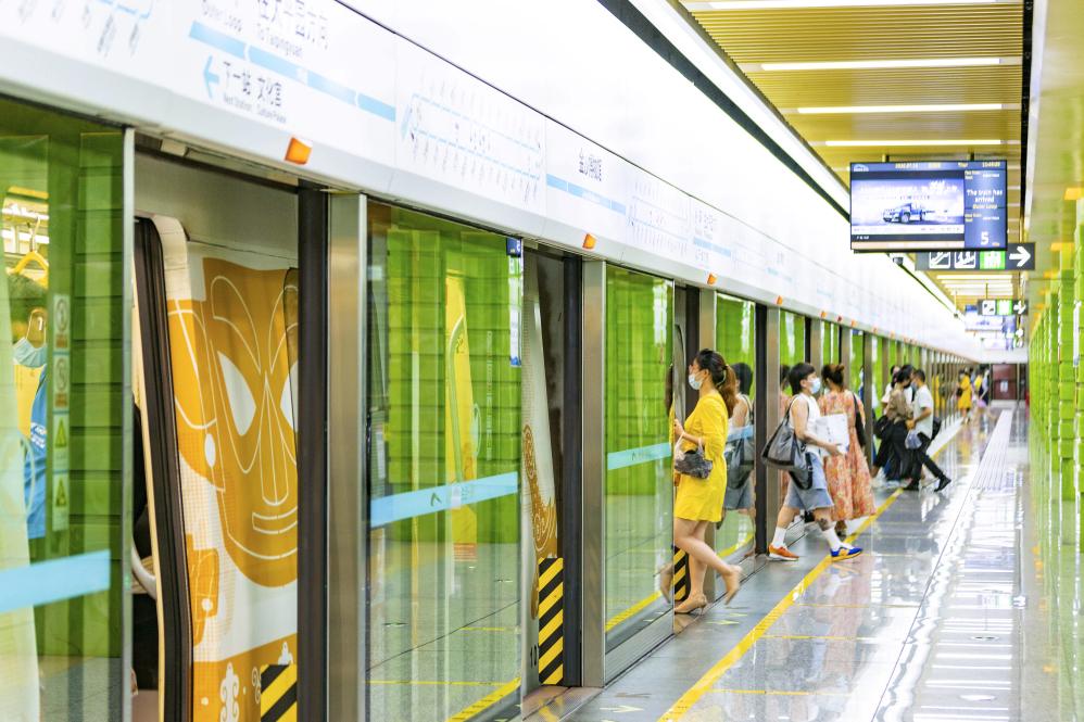 市民在成都乘坐金沙文化主题地铁列车(资料照片)。新华社发(成都金沙遗址博物馆供图)