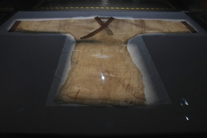 这是2024年5月13日在湖南博物院长沙马王堆汉墓陈列展厅拍摄的素纱单衣。新华社记者 薛宇舸 摄