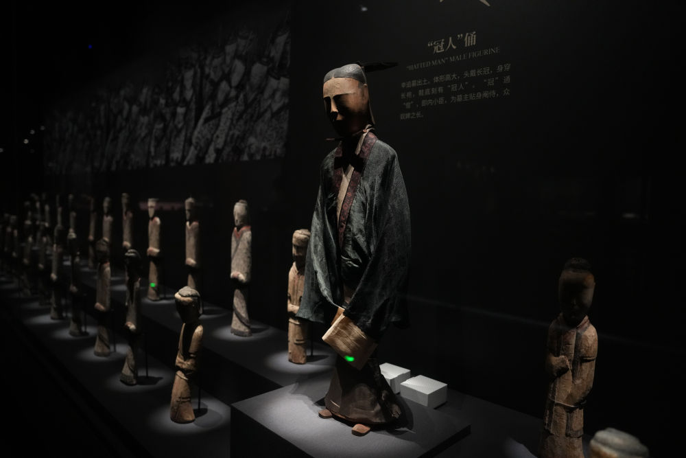 这是2024年5月13日在湖南博物院长沙马王堆汉墓陈列展厅拍摄的木俑。新华社记者 薛宇舸 摄