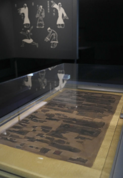 这是2024年5月13日在湖南博物院长沙马王堆汉墓陈列展厅拍摄的《导引图》。新华社记者 薛宇舸 摄