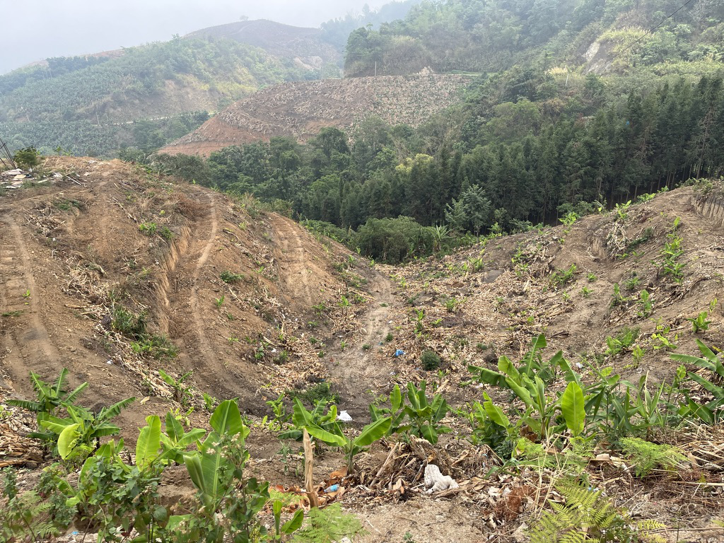 2023年长江经济带生态环境警示片披露,景洪市农垦集团所属国营景洪农场二分场、四分场和嘎洒街道沙药社区二组等地2019年至2023年以采伐更新的名义,大面积砍伐山地橡胶林等林木后,未按采伐作业设计要求种植橡胶林,而是违规大量种植香蕉、菠萝,且大部分处于坡度大于25度的山地上,有的甚至超过60度,水土流失和生态破坏严重。