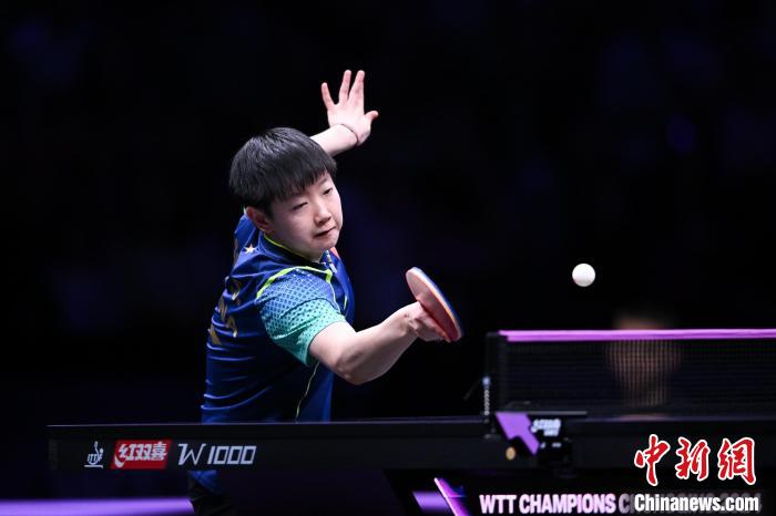 6月2日,在2024年世界乒乓球职业大联盟(WTT)重庆冠军赛中,中国选手孙颖莎以4:2击败队友陈梦,晋级决赛。中新社记者 何蓬磊 摄