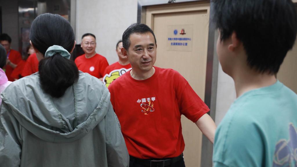 6月7日,在西南大学附属中学校考点,即将退休的历史老师肖文奇为学生送考。(白骏懿摄)