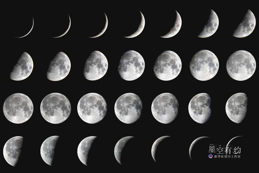 这是2021年累计用时3个月拍摄完成的农历初二到二十九的“月相全家福”。(杨婧拍摄)