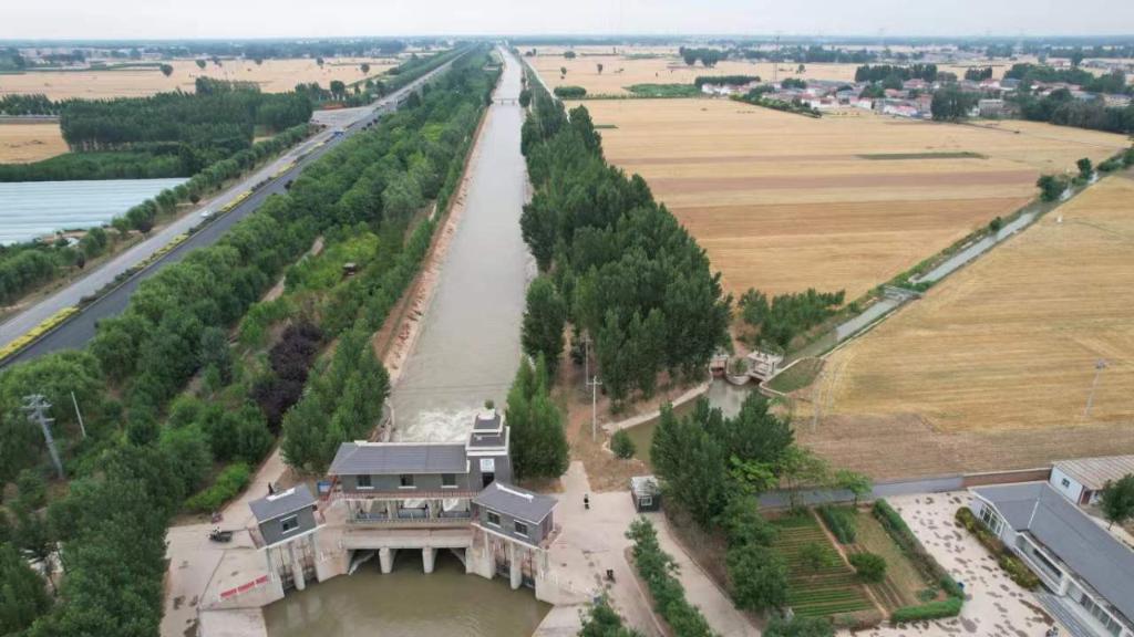 河北省最大灌区——漳滏河灌区狄邱枢纽,干渠右为南四支渠。新华社记者 刘诗平 摄