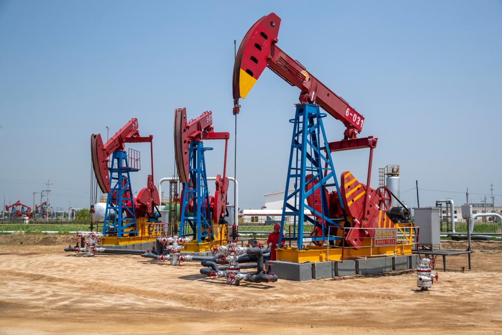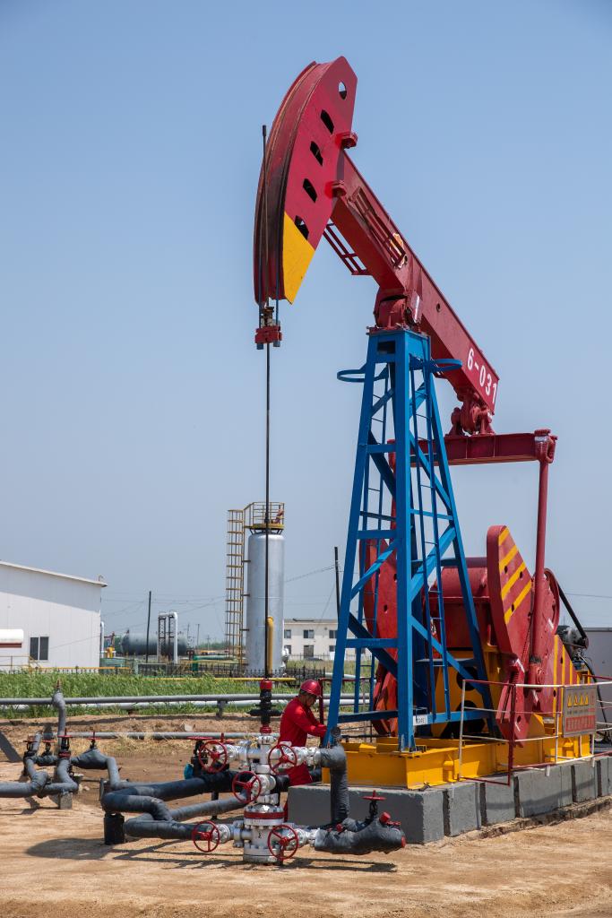 6月18日,采油工在位于盘锦市的辽河油田欢喜岭采油厂采油作业三区工作。新华社记者 李旭伦 摄
