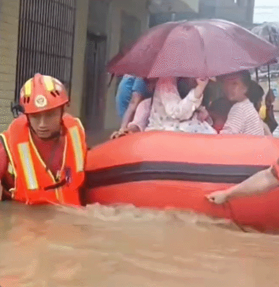 面对滔滔洪水,广东梅州平远县大柘镇坝头村一名村民做出了“逆行”的决定,关键时刻,他主动请缨返回村里,用家里的橡胶船协助救援人员将60多人转移到安全地带。