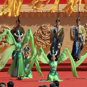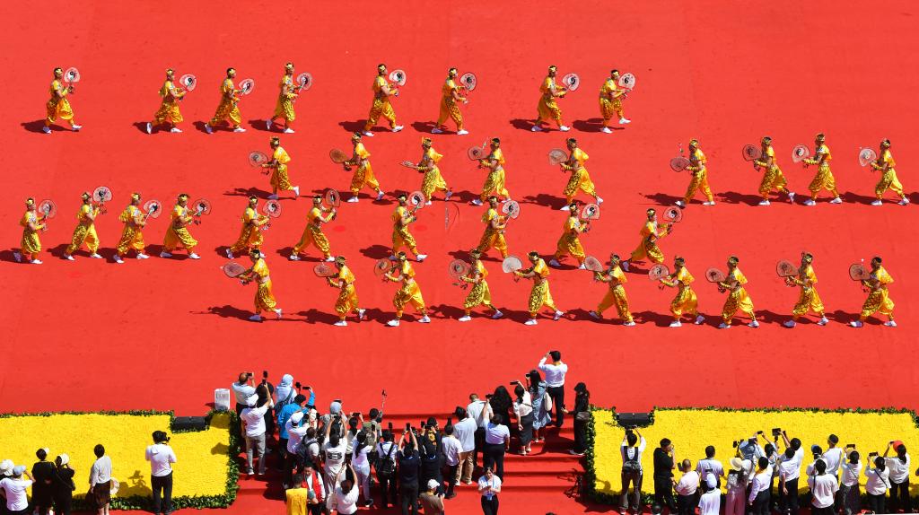6月21日,演员在公祭伏羲大典上表演乐舞告祭仪式。新华社记者 张智敏 摄