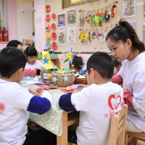 在北京大学医学部幼儿园,融合班的老师与孩子们在制作“星灯”(2024年3月27日摄)。新华社记者 任超 摄
