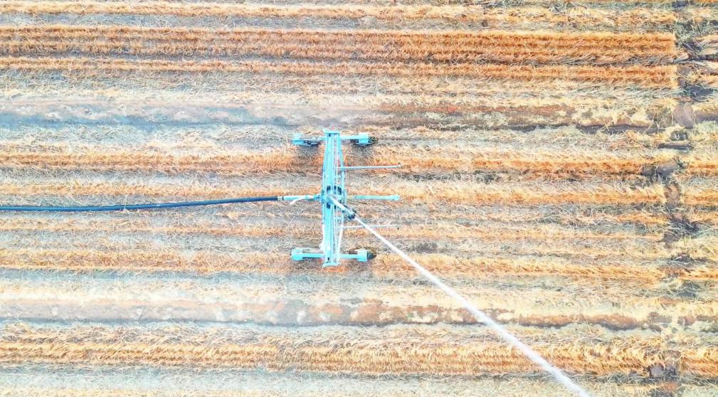 “只要接上机井里的水,设置好卷盘式喷灌机的水压、喷射半径和回管速度等数据,就可以实现均匀喷洒,就像模仿下雨一样,想让地里下小雨、中雨、大雨都行。”胡保民说,2台喷灌机几天就可以浇完400亩地。