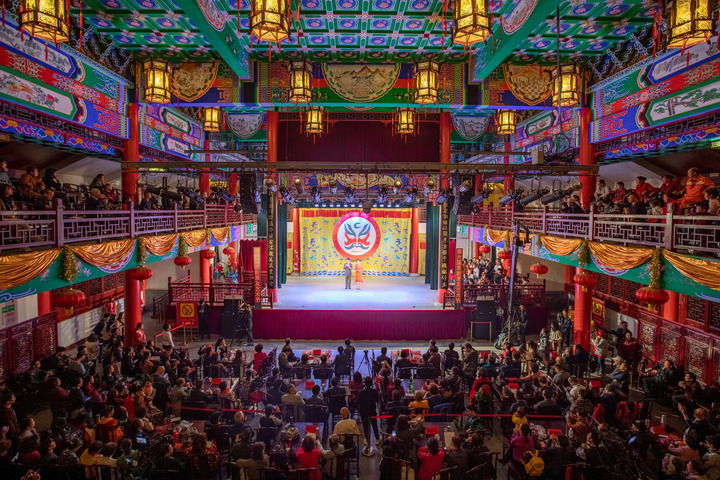 观众在江夏区谭鑫培戏楼观看演出。籍鹏飞 摄