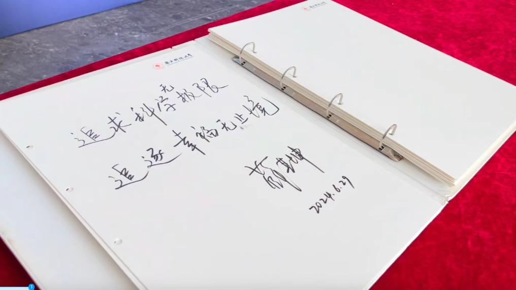 国家最高科学技术奖获得者、清华大学薛其坤院士6月29日在南方科技大学写下了“追求科学无极限,追逐幸福无止境”的寄语,鼓励青年放飞科学梦想,把个人学术追求融入科技强国的伟大事业。