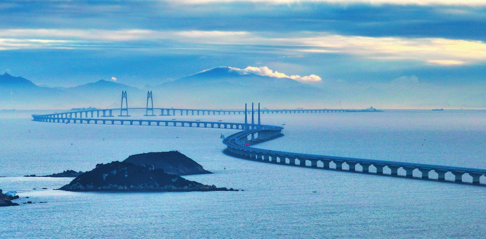 晨曦中的港珠澳大桥(2023年12月15日摄)刘大伟摄/本刊