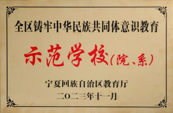 ▲北方民族大学获评宁夏回族自治区铸牢中华民族共同体意识教育示范学校。