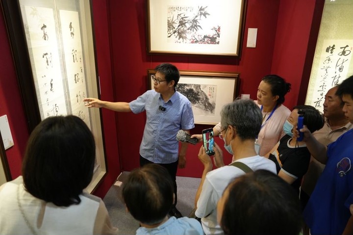 艺术博览会设有名人名家展区、书画艺术展区、文创艺术展区、民间藏品展区、非遗文化展区等七大展区,陈列来自中国美术家协会、书法家协会、西泠印社以及知名当代摄影艺术家的作品2000余件。参观艺术展览、购买文创产品、体验非遗文化……艺博会现场观众比肩接踵,沉浸在这场文化盛宴之中。开幕首日,观展人数突破2万人次。