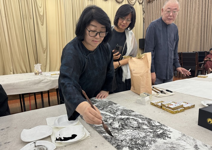 艺博会现场笔会,书画家挥毫泼墨。(受访单位供图)