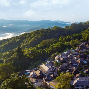 这是被山林与茶园环绕的云南景迈山翁基古寨一景(2023年9月18日摄,无人机照片)。新华社记者 胡超 摄