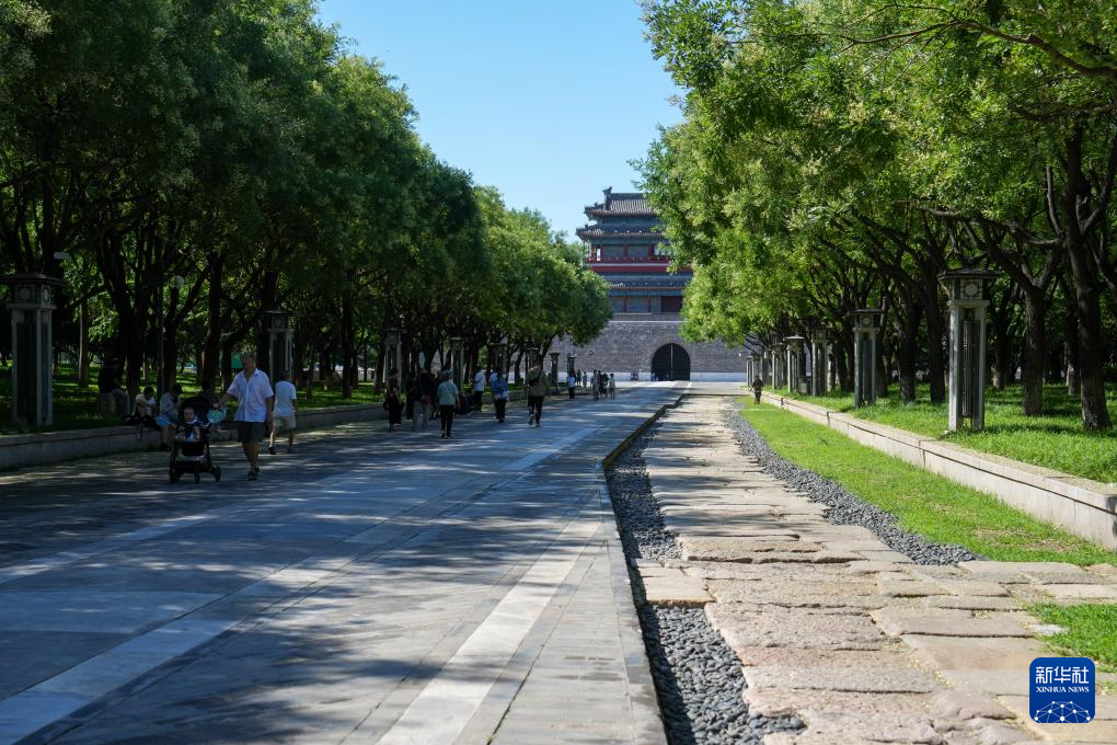 这是7月18日在北京永定门公园拍摄的中轴线南段道路遗存。新华社记者 鞠焕宗 摄