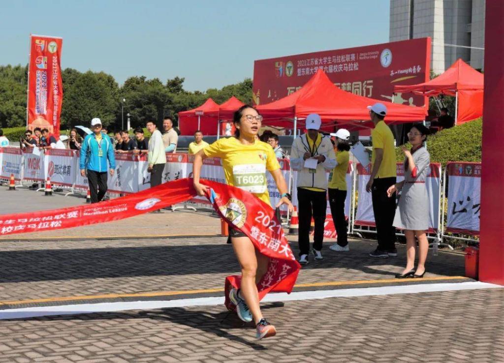 黄雪梅在2021东南大学第六届校庆马拉松比赛撞线↑