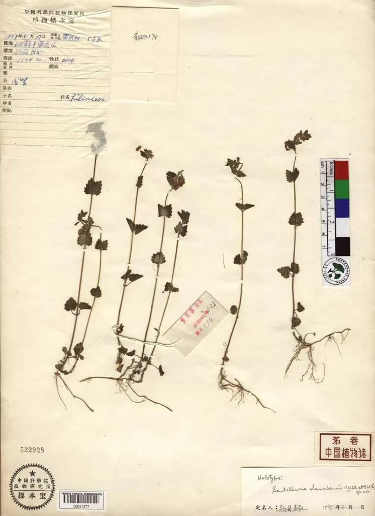 山西黄芩的首次采集记录可回溯至1957年5月27日,当时黄河调查队在永济市雪花山海拔1500米的沟底阴处采集到了编号为574的模式标本,相关学者于1977年在《中国植物志》附录中发表了该种。自那以后,一直未曾有关于此物种的标本记录。鉴于标本的首次采集正值该种的花期,《中国植物志》的记载也仅对花有所描述,但对果实和种子的描述则相对欠缺。