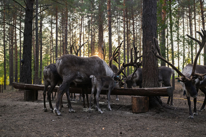 清晨出门,好似误入仙境,群山之间云雾缭绕,像害羞的姑娘遮上了一层面纱。驯鹿园中,鹿群在林间漫步,并不怕人,还会亲昵地舔着主人的手。这一刻,我们走进了书中的场景,对鄂温克人与自然的联结也有了实际感受。