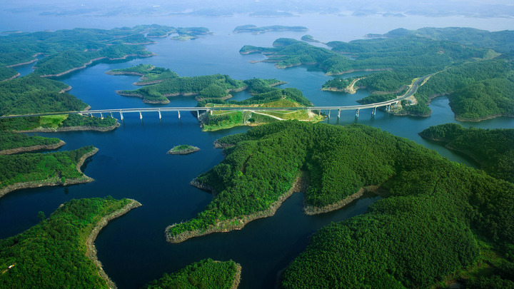 这是湖北十堰丹江口库区航拍图。(十堰市生态环境局供图)