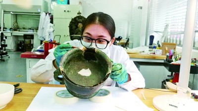 金石修复组成员尹航,不久前刚刚完成了文物“叶纹镜”的保护修复。这面战国时期的铜镜,镜面已碎裂为十二块,有缺失,亟待修复。“在故宫博物院,如果想对一件文物开展修复,必须先设计相关方案,方案里不仅要包含修复方法及修复材料,还要写明工作计划和修复目标,再请专家进行评审。评审过程中,专家会针对存在的难点提出问题,只有方案制定人全部解答无误,才能获批修复,这一过程可能持续几个月。”尹航笑着说,“不过大家都打心底里认可,故宫博物院的高标准、严要求,有助于我们更好成长。”