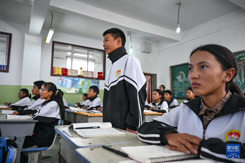 9月10日,扎西格堆在课堂上回答问题。新华社记者孙瑞博 摄