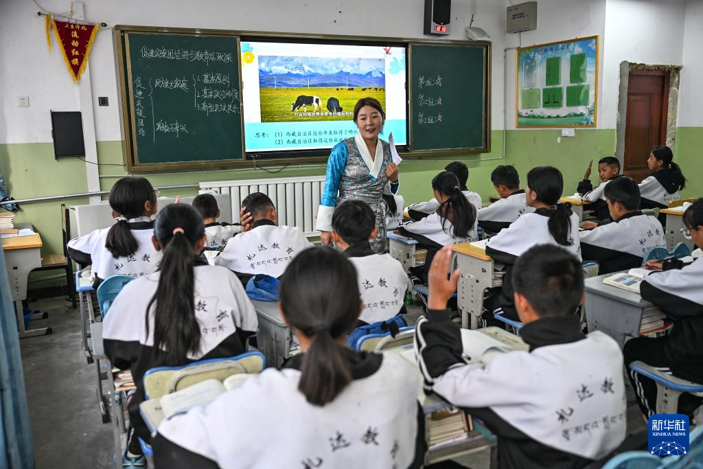 走进西藏阿里地区札达县九年一贯制学校,初三(2)班的孩子正在上民族团结主题思政课。“谁能讲一个关于爱国的故事?”老师次仁曲加问。孩子们思索片刻,争抢着举手,扎西格堆第一个站起来回答:“江孜保卫战!面对侵略者数次进攻,虽然弹尽粮绝,各族同胞仍坚持战斗、宁死不屈,展现出团结一心、众志成城的精神……”