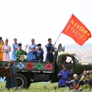 2024年7月14日,乌兰牧骑队员在内蒙古第34届草原那达慕开幕式上表演。新华社记者 贝赫 摄
