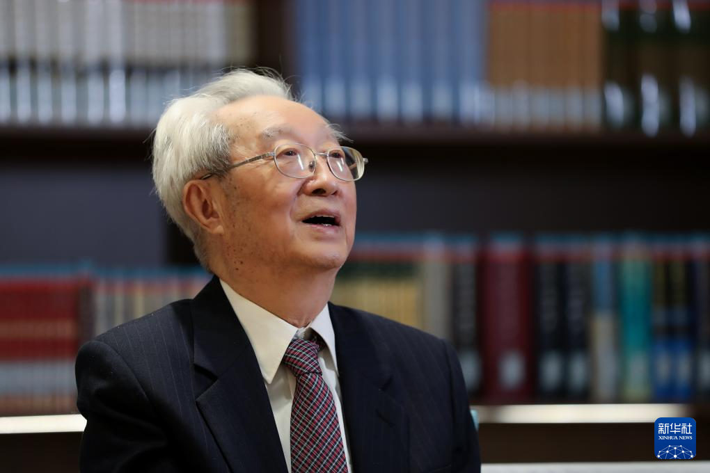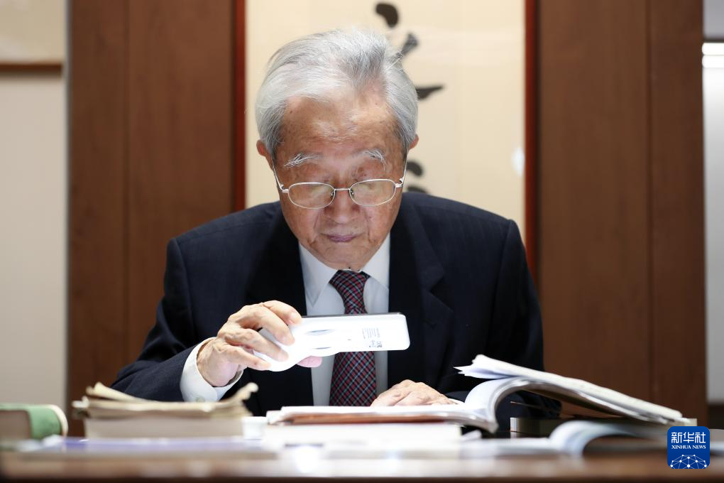 张晋藩教授在中国政法大学海淀校区图书馆蓟门法史书苑(2024年9月13日摄)。新华社发(卢云开 摄)