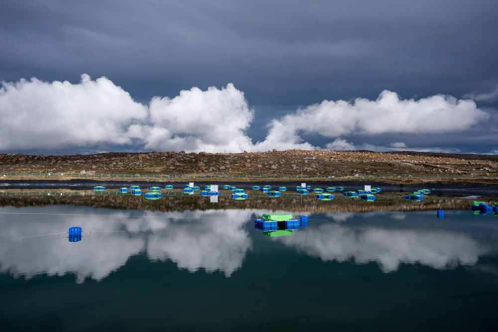 ↑这是9月20日拍摄的蓝色箱体为主体的广角切伦科夫望远镜阵列。新华社记者 江宏景 摄