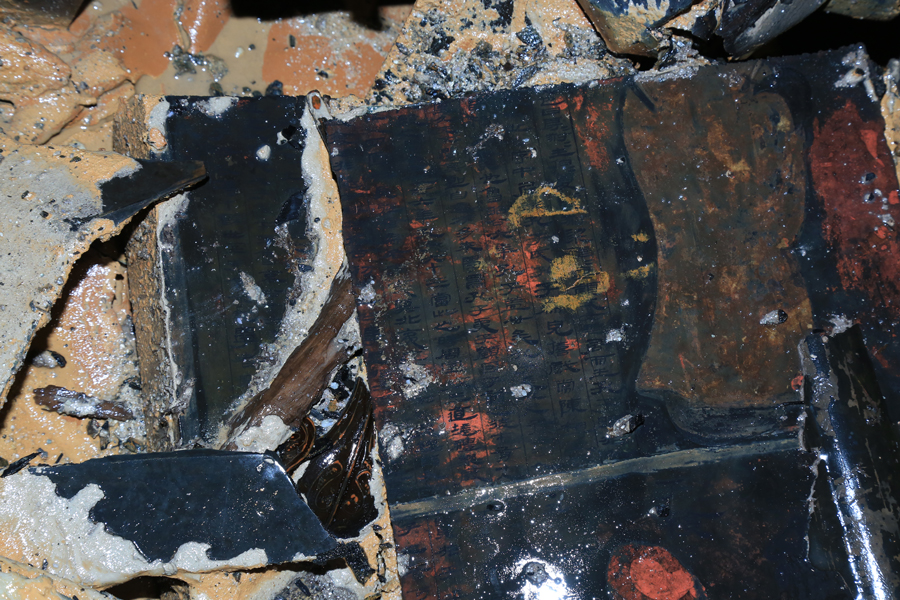 (图为孔子衣镜出土时的场景。江西省文物考古研究院供图)