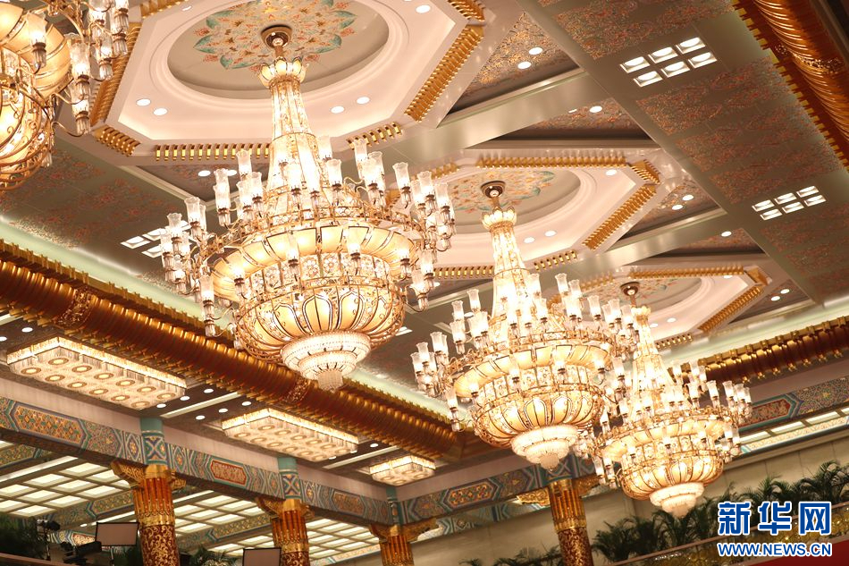 9月29日,中华人民共和国国家勋章和国家荣誉称号颁授仪式在北京人民大会堂金色大厅隆重举行。图为人民大会堂金色大厅。新华网记者 陈杰 摄